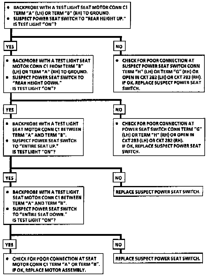 Chart 4 Rear Height Will Not Go Up Or Down, Forward Or Back Functions Normally: