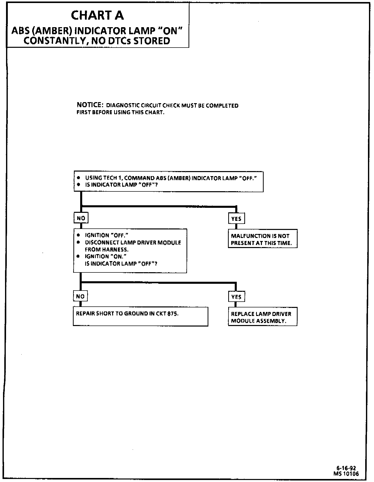 Chart A Indicator Lamp "On" Constantly, No DTC's Stored