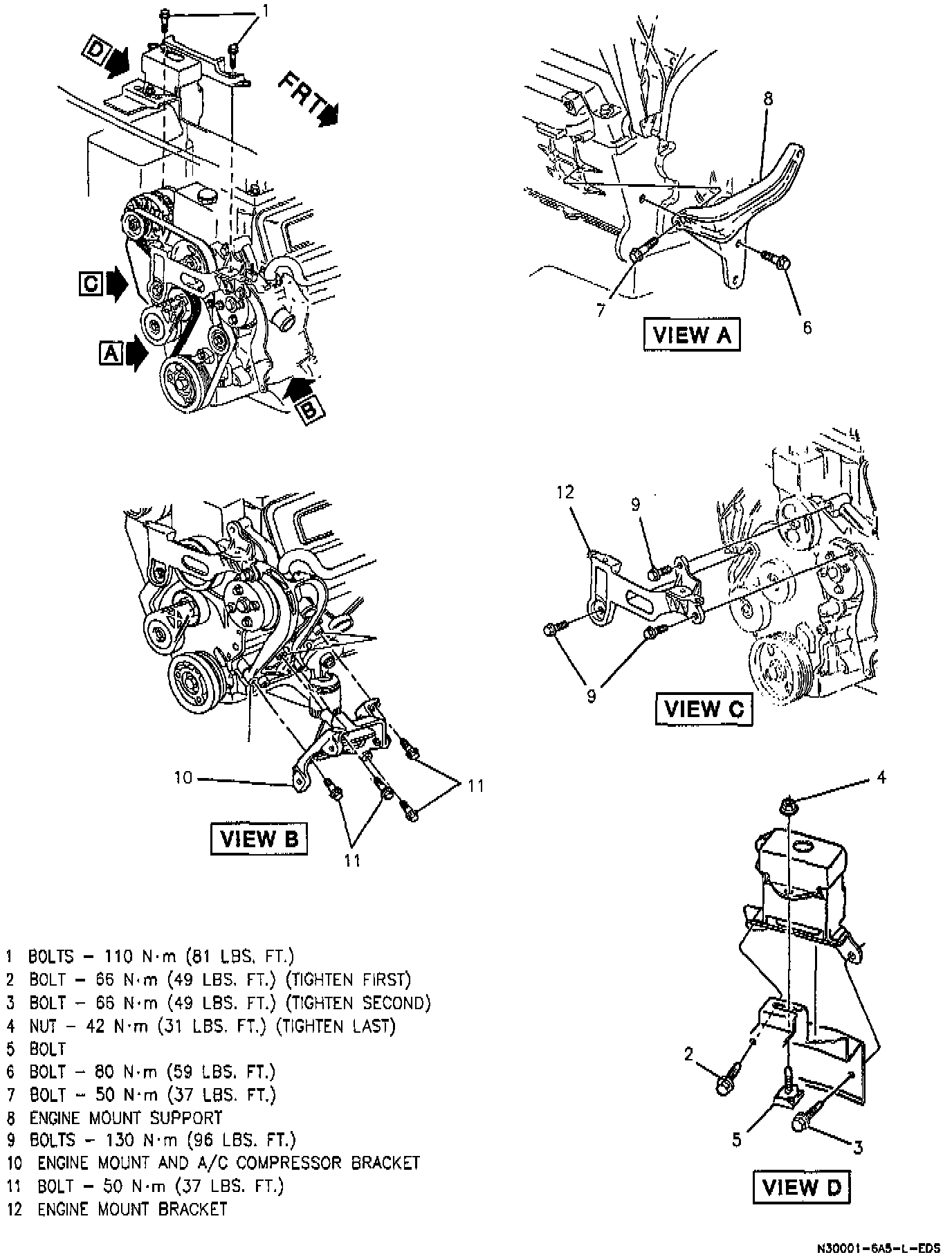 3. Install right engine mount to body bolts and tighten in sequence to specification.