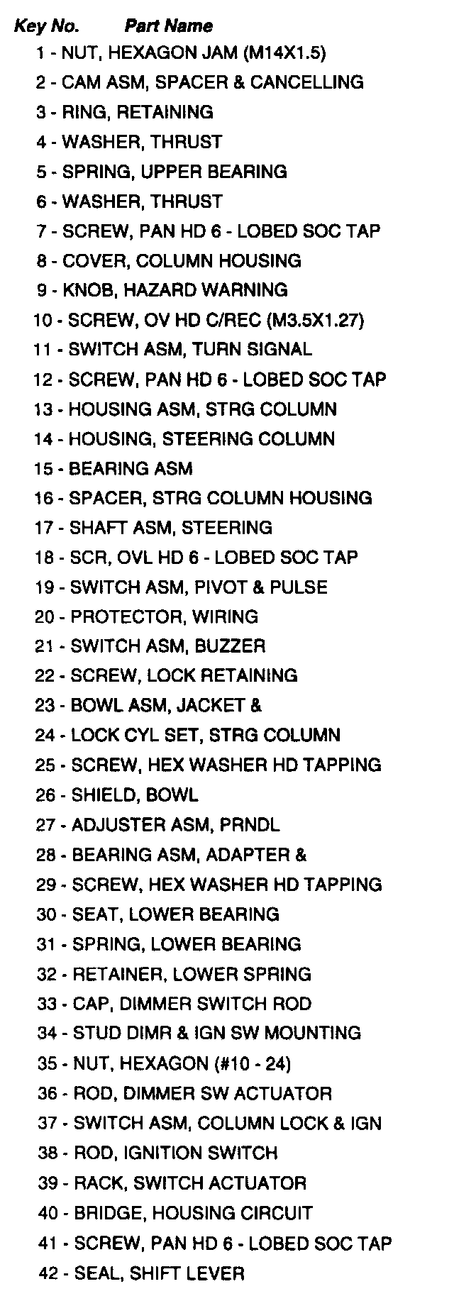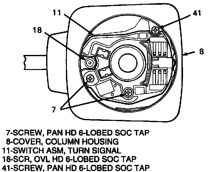 Important: Position turn signal switch (11) so that turn signal switch screws (7) and housing cover screw (41) can be removed through openings in switch.