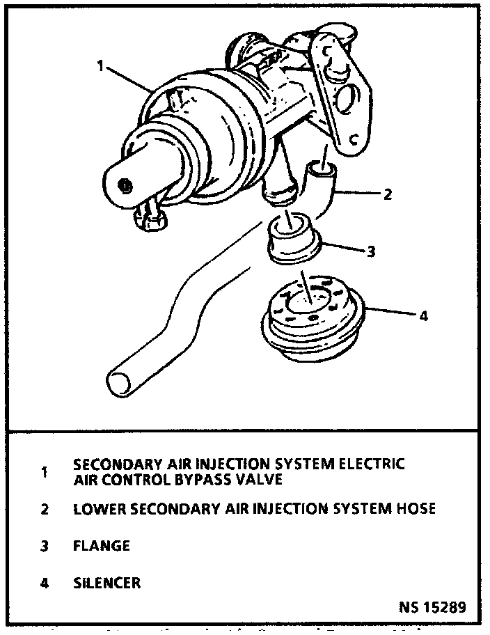 8. Lower hose, silencer, and adaptor from secondary air injection system electric air control bypass valve.