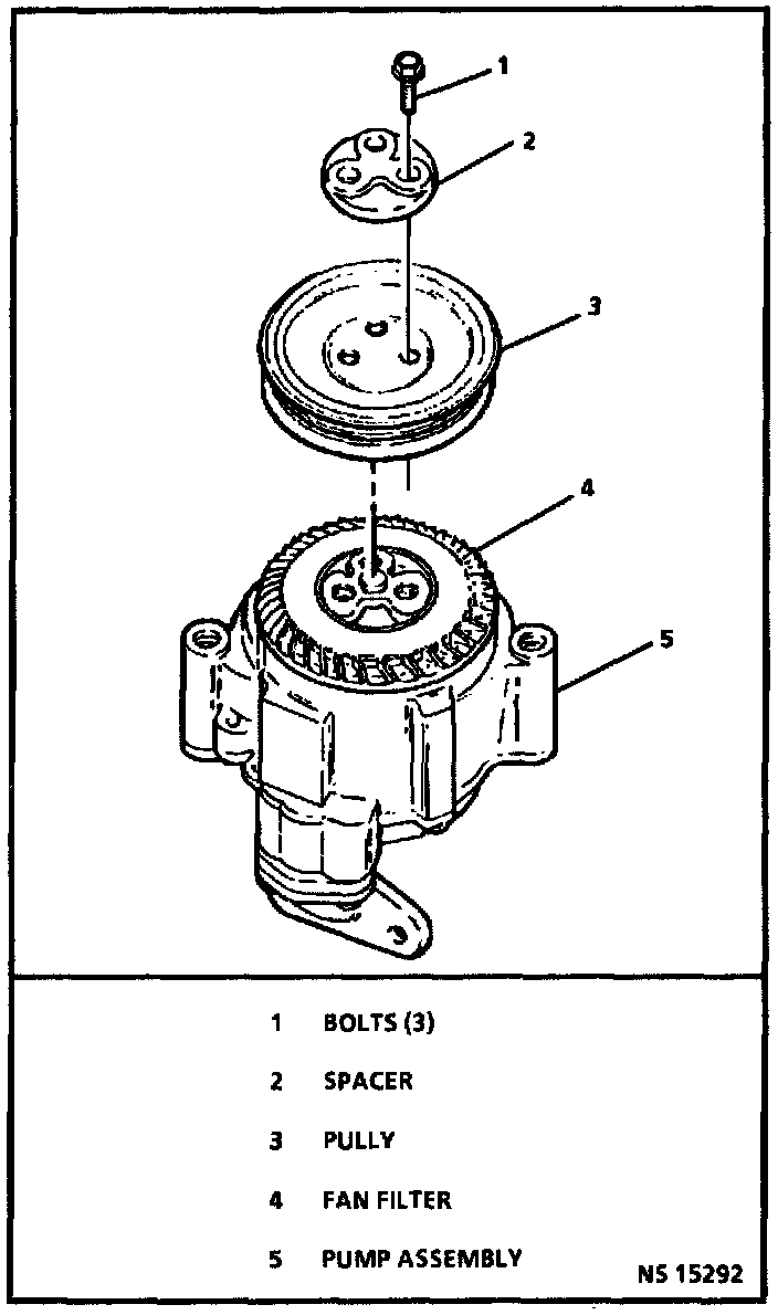 NOTE: After a new fan filter has been installed, it may squeal upon initial operation or until O.D. sealing lip has worn in. This may require a short period of pump operation at various engine speeds.