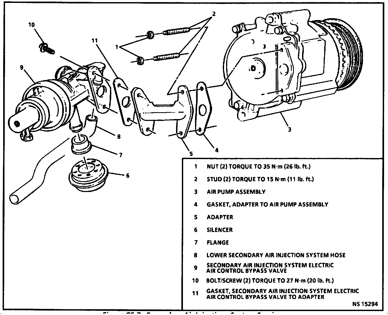 7. Two nut electric air control bypass valve to air pump assembly. Torque electric air control bypass valve to air pump assembly nuts to 35 Nm (26 lb ft).