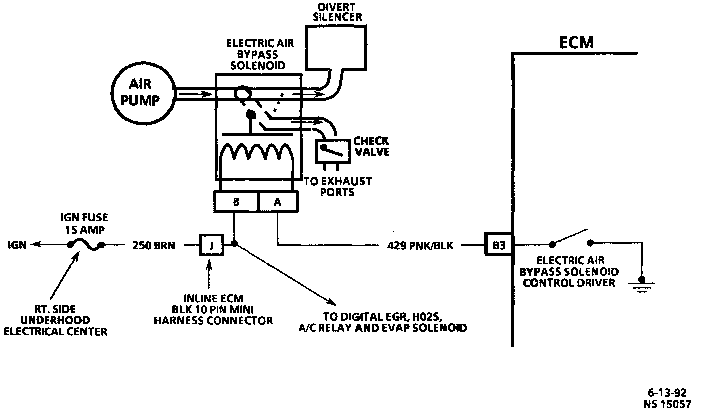 ^ Electric Control Valve: Air flows from the pump through an ECM controlled valve (called a secondary air injection system electric air control valve) through a check valve to the exhaust ports or to atmosphere.
