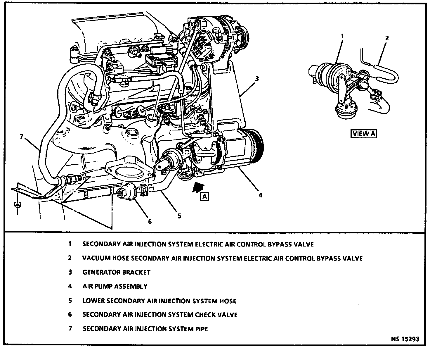 ^ Air Pump: The air pump is driven by a belt on the front of the engine and supplies the air to the system. Intake air passes through a centrifugal filter fan at the front of the pump; where foreign materials are separated from the air by centrifugal force.