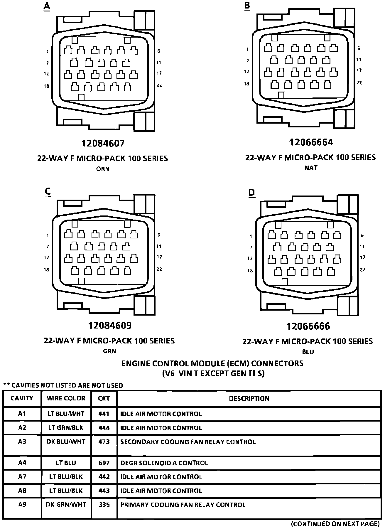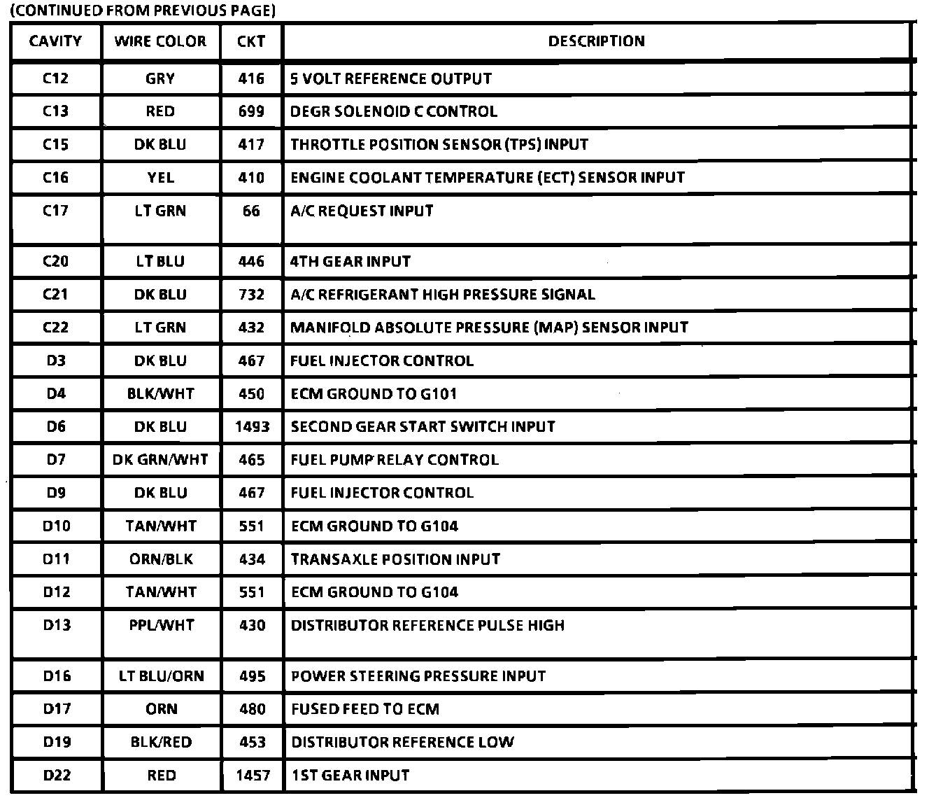 Engine Control Module (ECM) Connector Cavity Descriptions:
