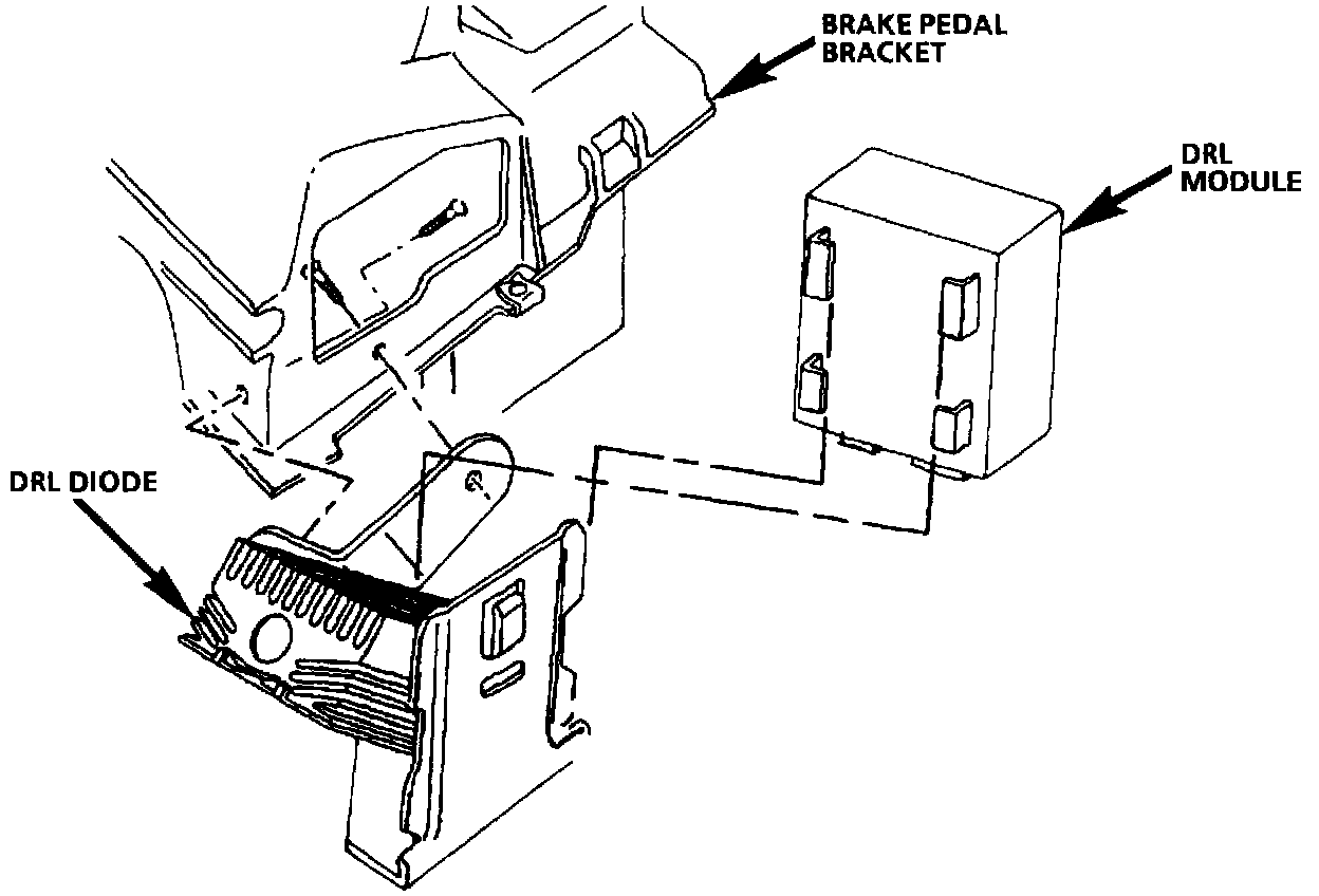 The Daytime Running Lights Module is located behind I/P, on brake pedal support.