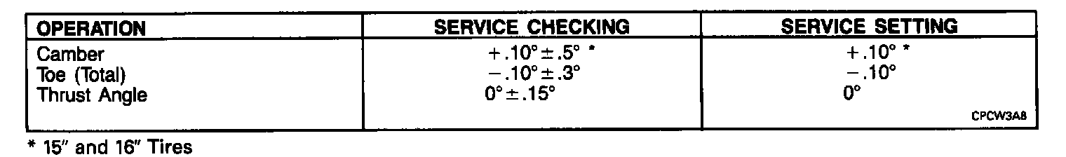 Rear Wheel Alignment Specifications: