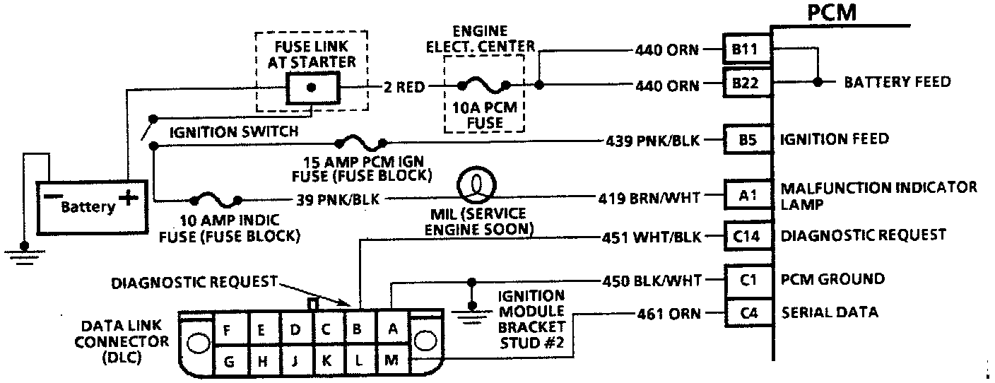 ^ Intermittent Test. If connections and harness checks OK, monitor battery voltage display while moving related connectors. If the failure is induced, the battery voltage will abruptly change. This may help to isolate the location of the malfunction. An engine stall while manipulating the harness indicates that the PCM has lost voltage at terminal "B5". Check for loose connectors in CKT 440.