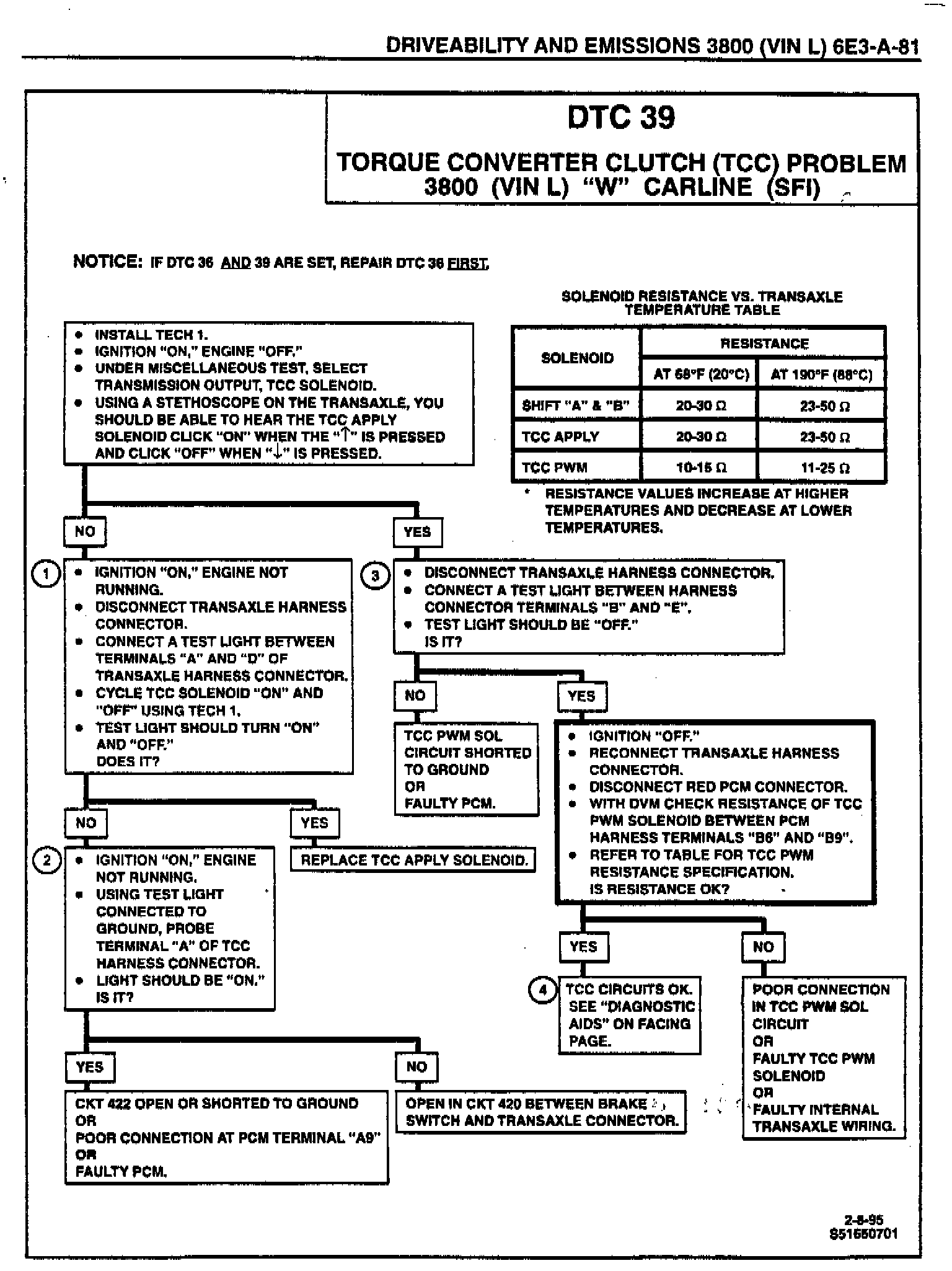 This bulletin updates the DTC 39 Torque Converter Clutch (TCC) Problem Chart. This revised chart corrects an error in the PCM harness terminals used to check the resistance of the TCC PWM Solenoid.