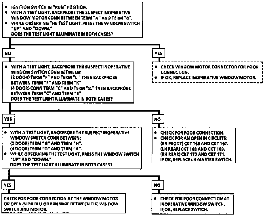 Chart 5 One Window (Other Than LH Front) Is Inoperative From Both Master And Individual Window Switch, Others Are OK: