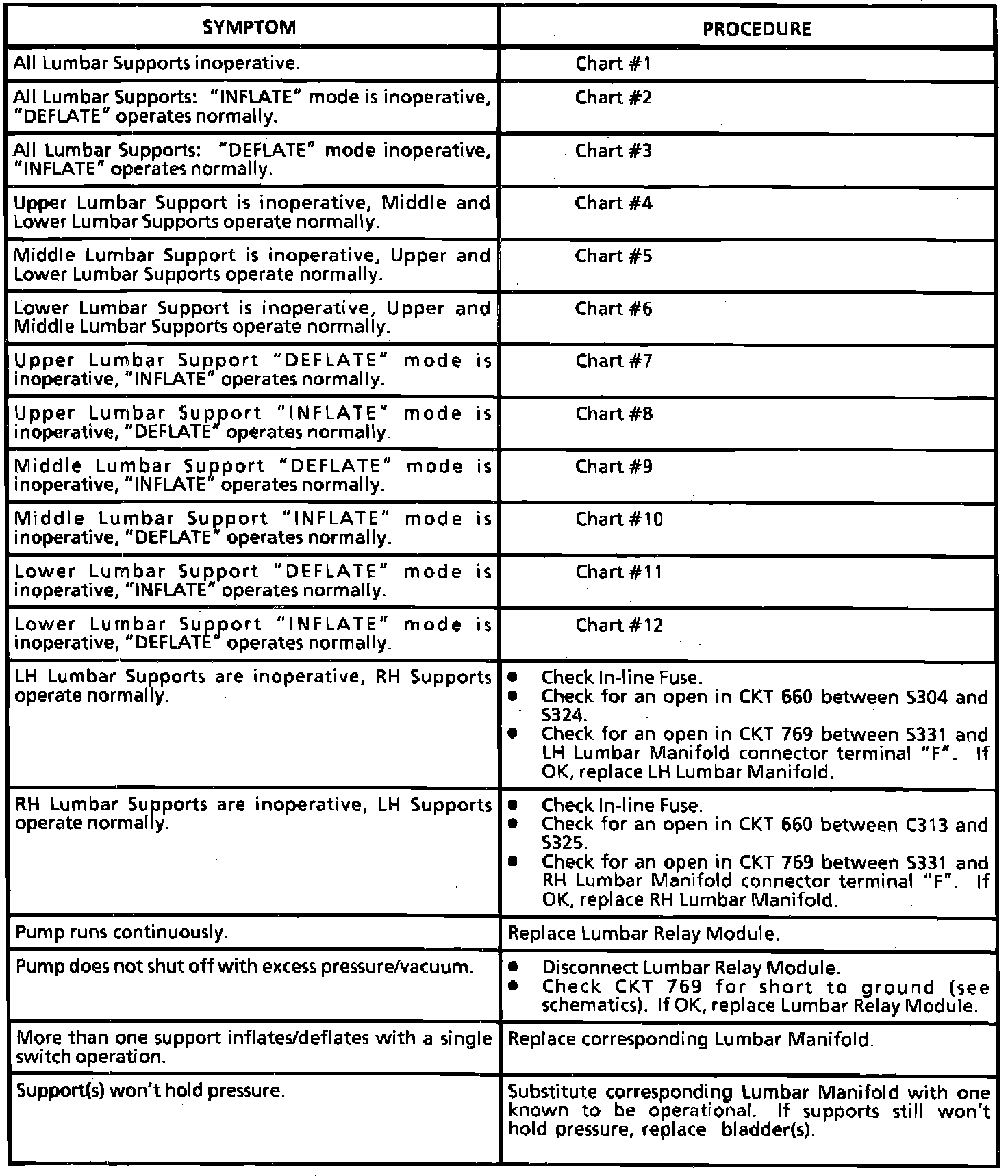 A Symptom Table - Lumbar Seats