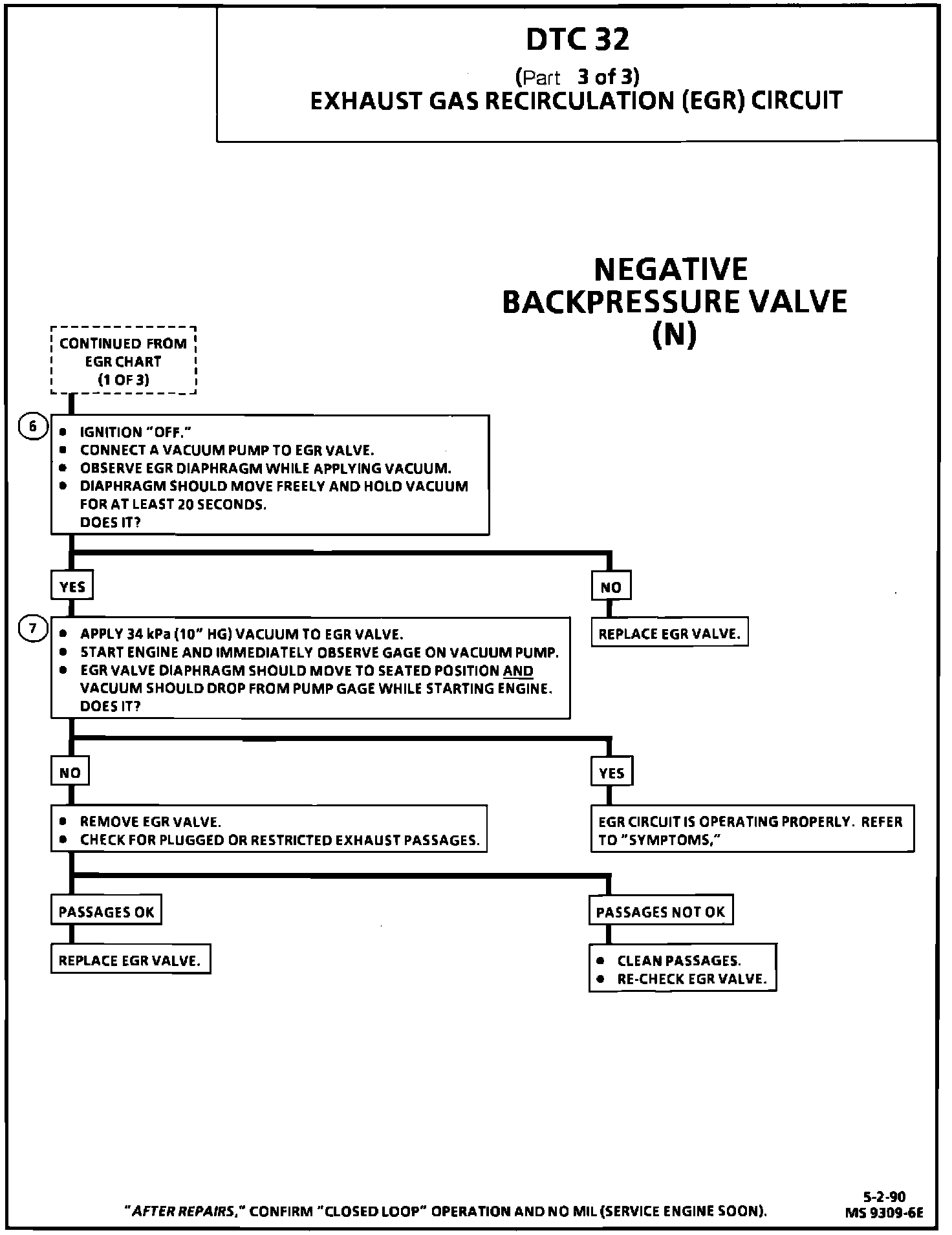 The ECM monitors EGR effectiveness by de-energizing the EGR control solenoid valve, thereby, shutting "OFF" vacuum to the EGR valve diaphragm. With the EGR valve closed, manifold vacuum will be greater than it was during normal EGR operation and this change will be relayed to the ECM by the MAP sensor. If the vacuum change is not within the calibrated window, a DTC 32 will be set.