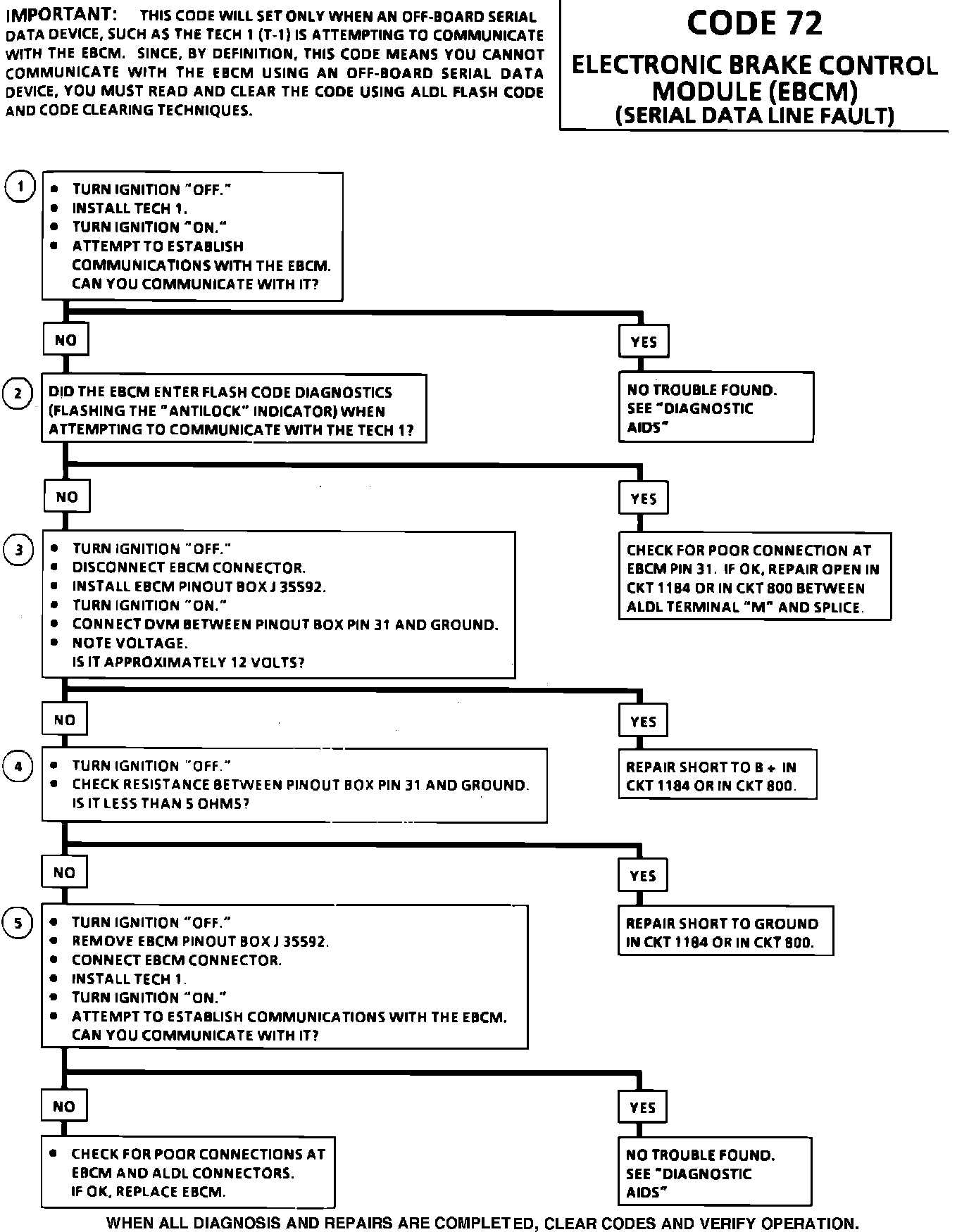 Fig. 26 Code 72, EBCM Serial Line Data Fault (Part 1 of 2):