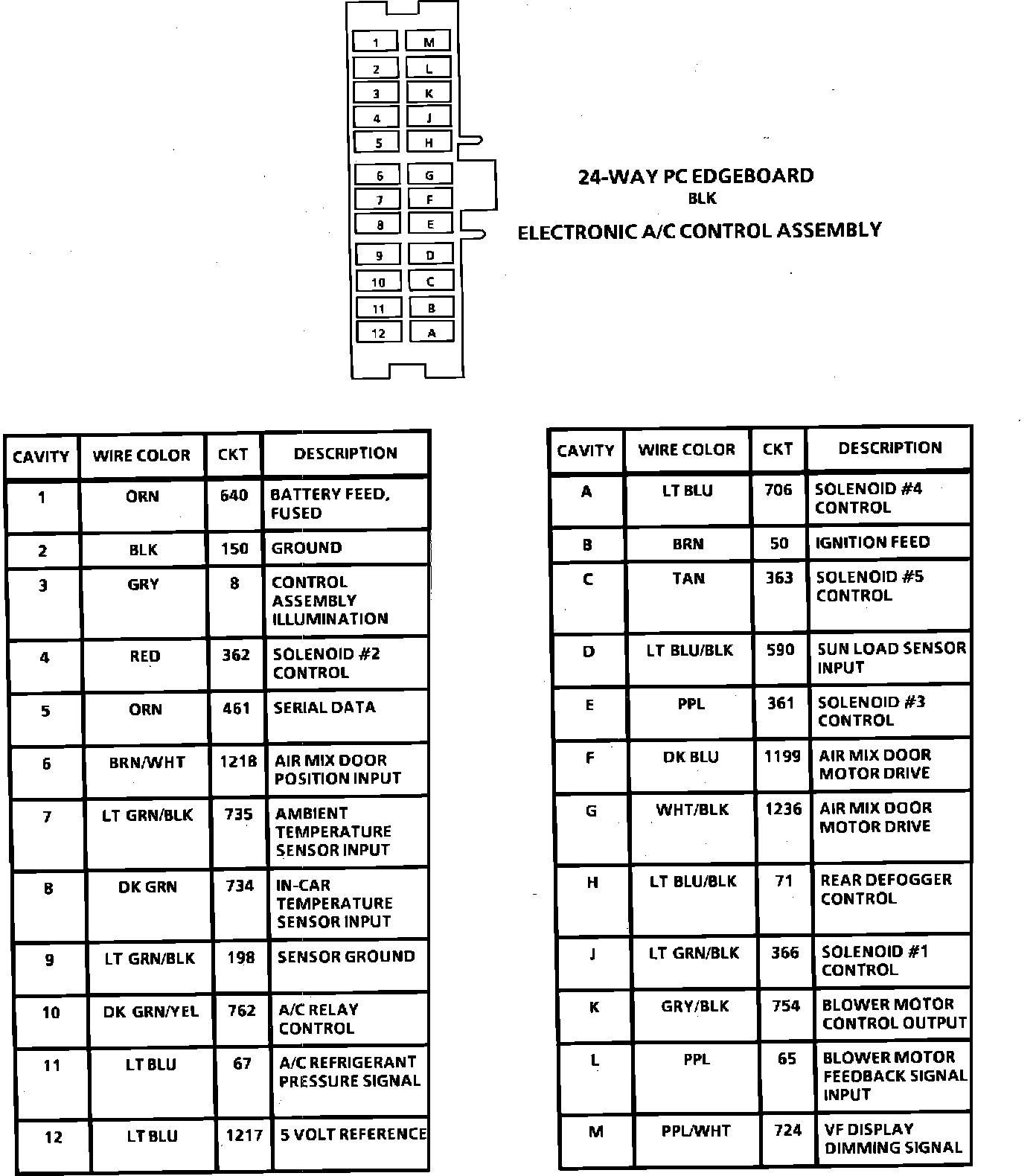 Electronic A/C Control Assembly Connector Face:
