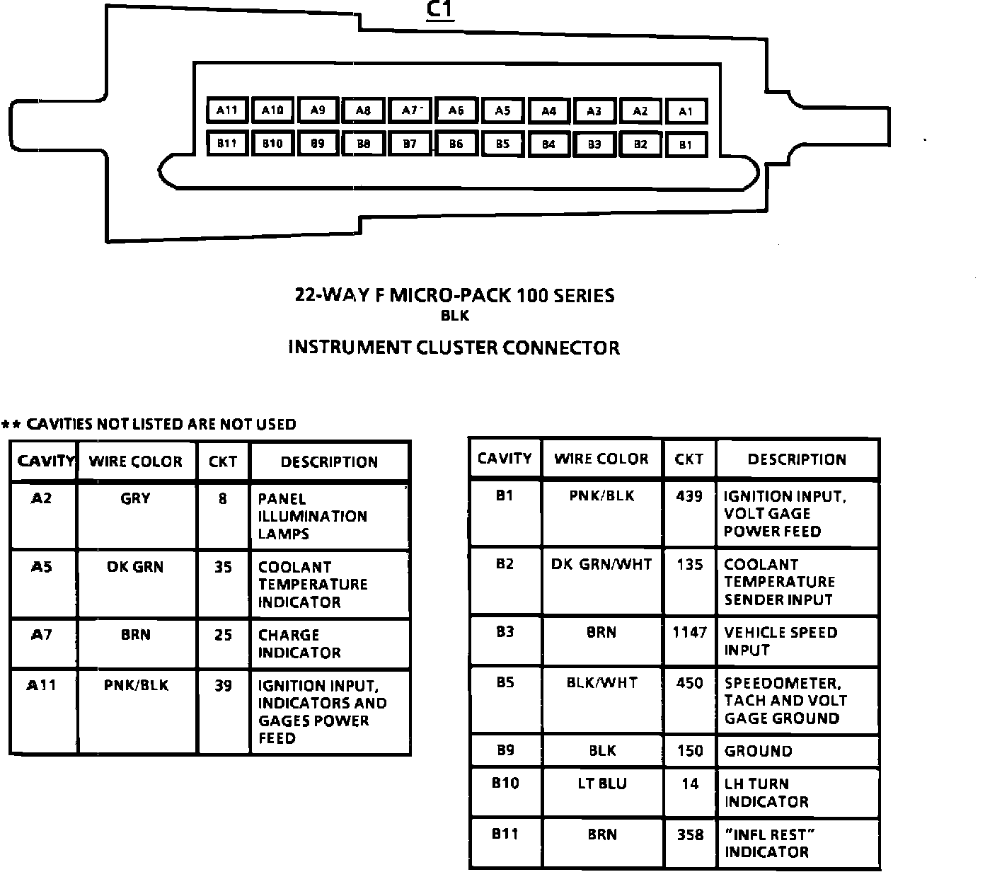 Instrument Panel Cluster C1 Connector Face: