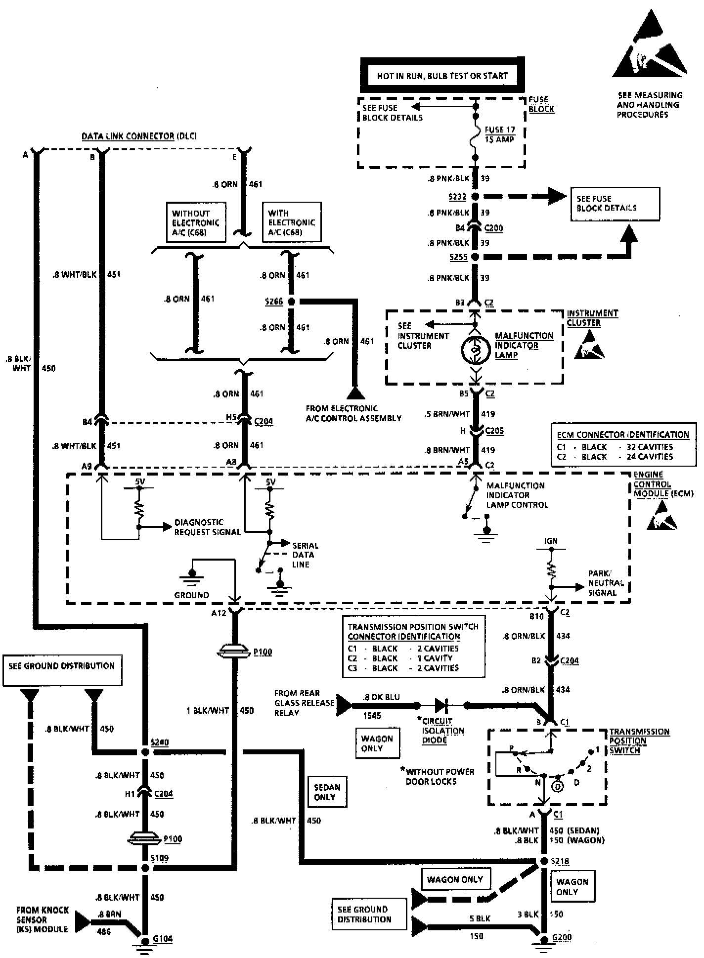 Throttle Body Injection: V8 VIN 7 "Service Engine Soon" Indicator, Data Link Connector And ECM Ground: