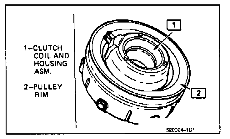 1. Assemble the Clutch Coil, Pulley Rim and the Clutch Rotor and Bearing assembly. Use new screws and apply sealer GM 12345382 (Loctite 242, or equivalent) to screw threads but do not lock the screws in place.