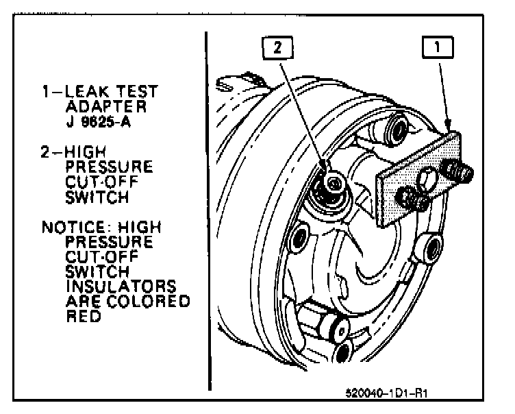 17. When the pressure pump-up test is completed. recover refrigerant from the HIGH side and remove the Gage Adapters J 5420 and Test Plate J 9625-A.