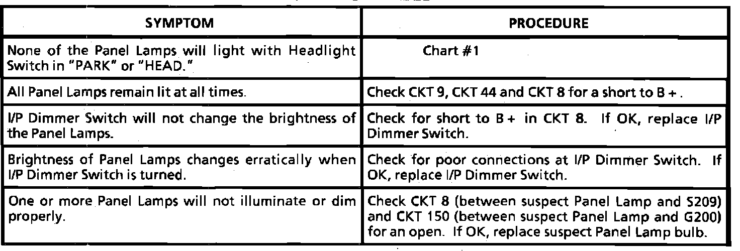 A Symptom Table - Interior Lights Dimming