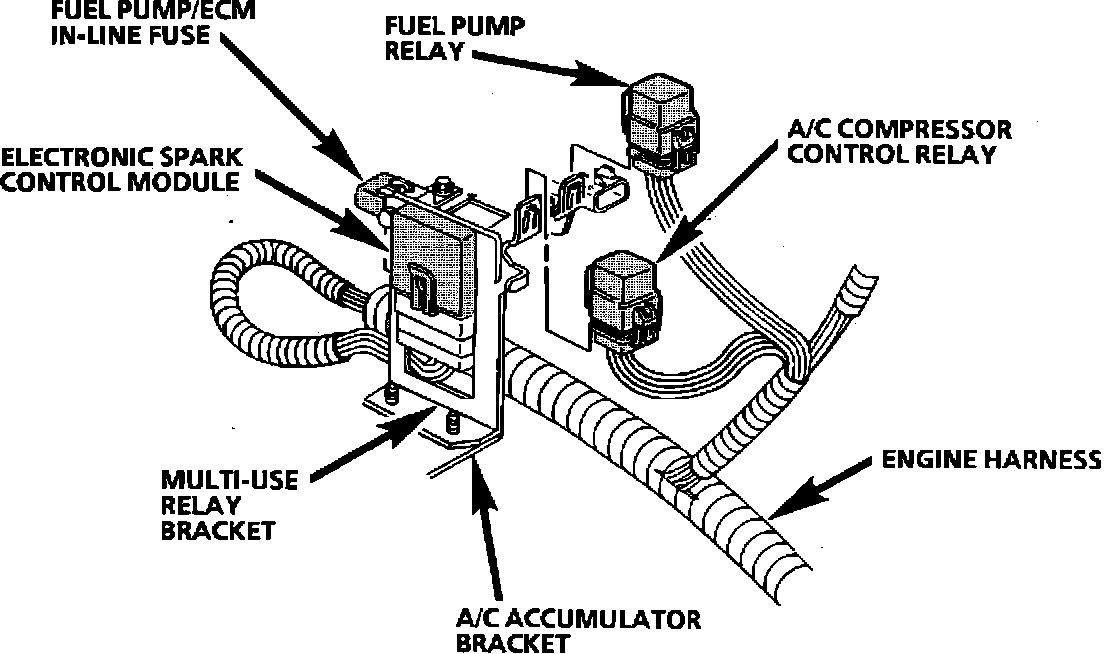 Attached To Multi-Use Relay Bracket, RH Rear Engine Compartment: