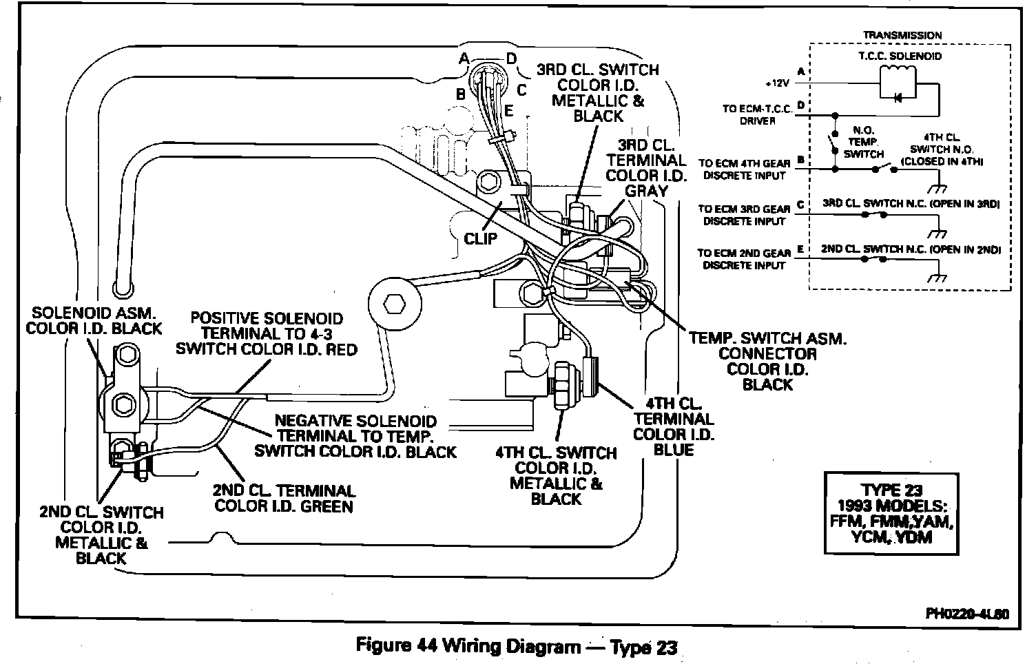 Update your 1993 Service Manual Section 7A-15A Automatic Transmission Diagnosis with the different types of updated TCC wiring diagrams.