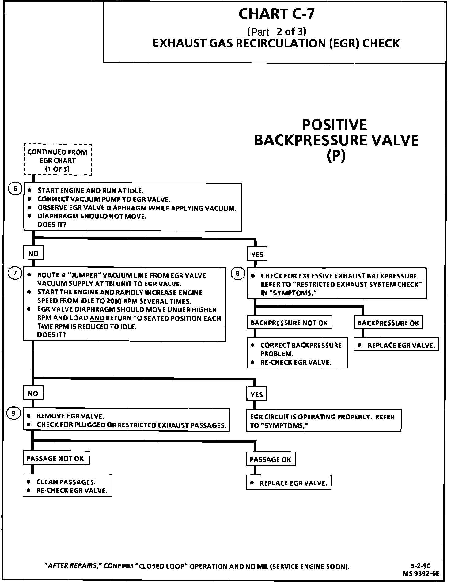 6. The remaining tests check the ability of the EGR to interact with the exhaust system. This system uses a POSITIVE BACKPRESSURE EGR VALVE which will not hold vacuum until sufficient exhaust backpressure is at the base of the valve.