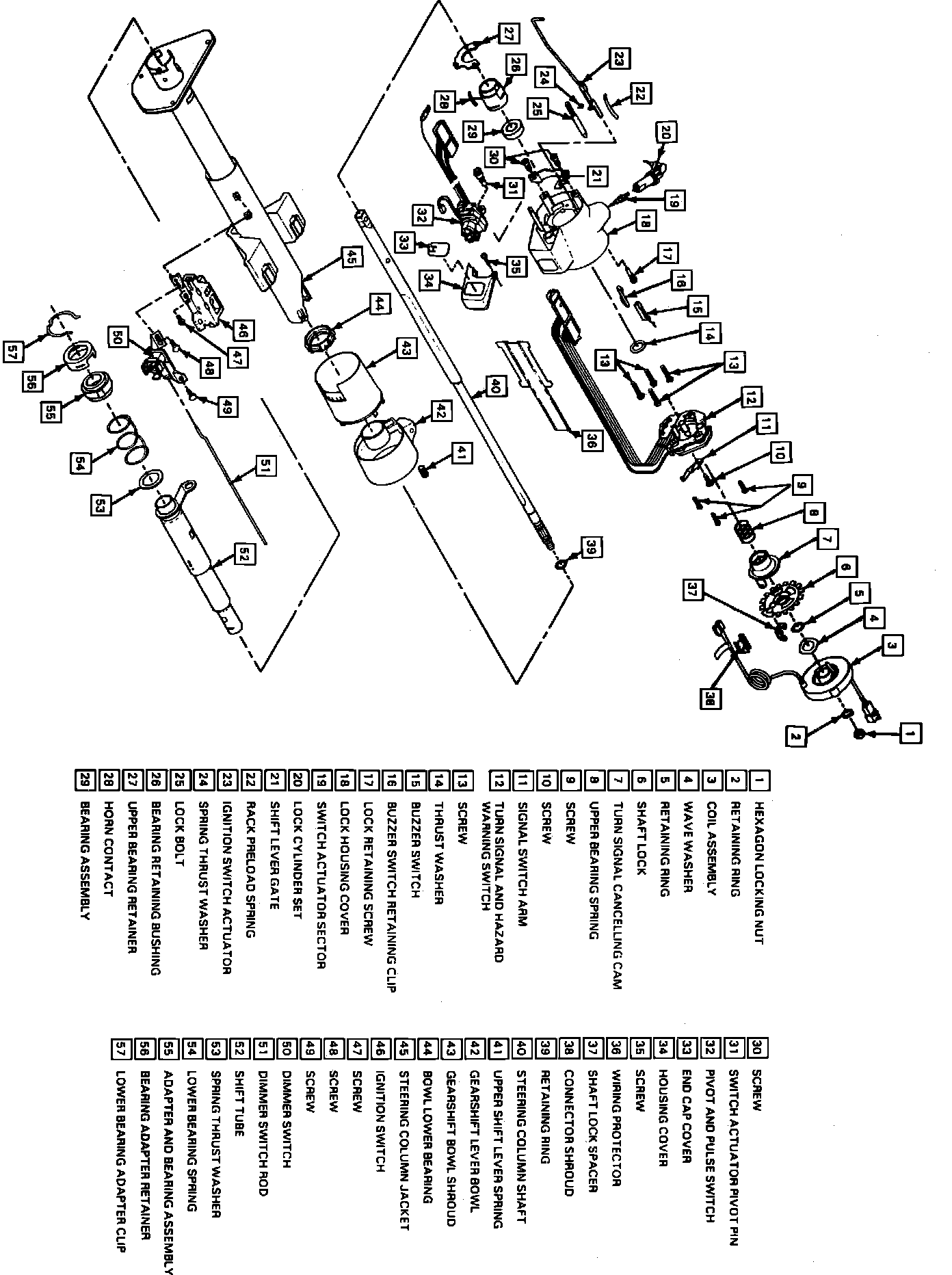 Refer to Fig. 113 for exploded view of steering column.