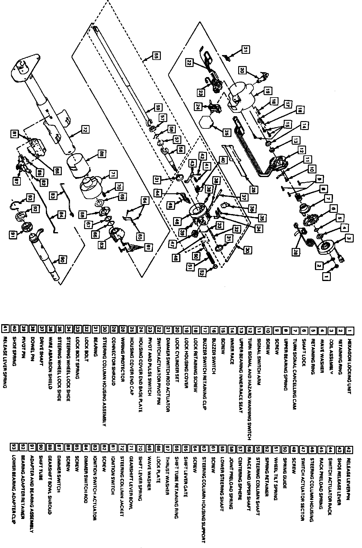 Refer to Fig. 114 exploded view of steering column.