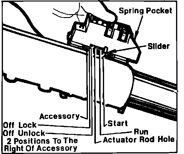 5. If lock cylinder has been removed, pull switch actuator rod up to stop, then push rod down to second detent to place switch in Off unlocked position, Fig. 2.