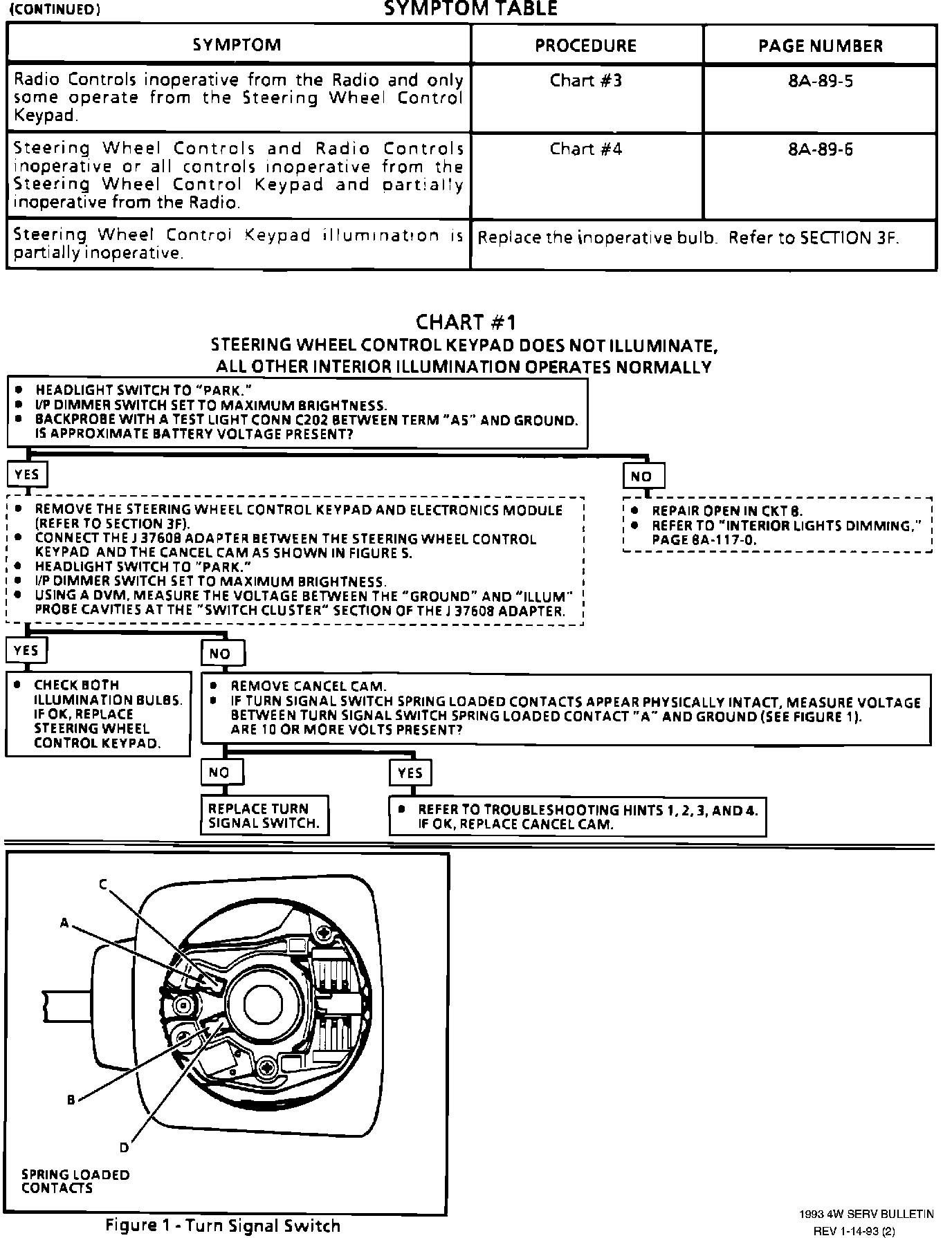 Page 8A-89-3 - Symptom Table (continuation) Chart 1 and Figure 1