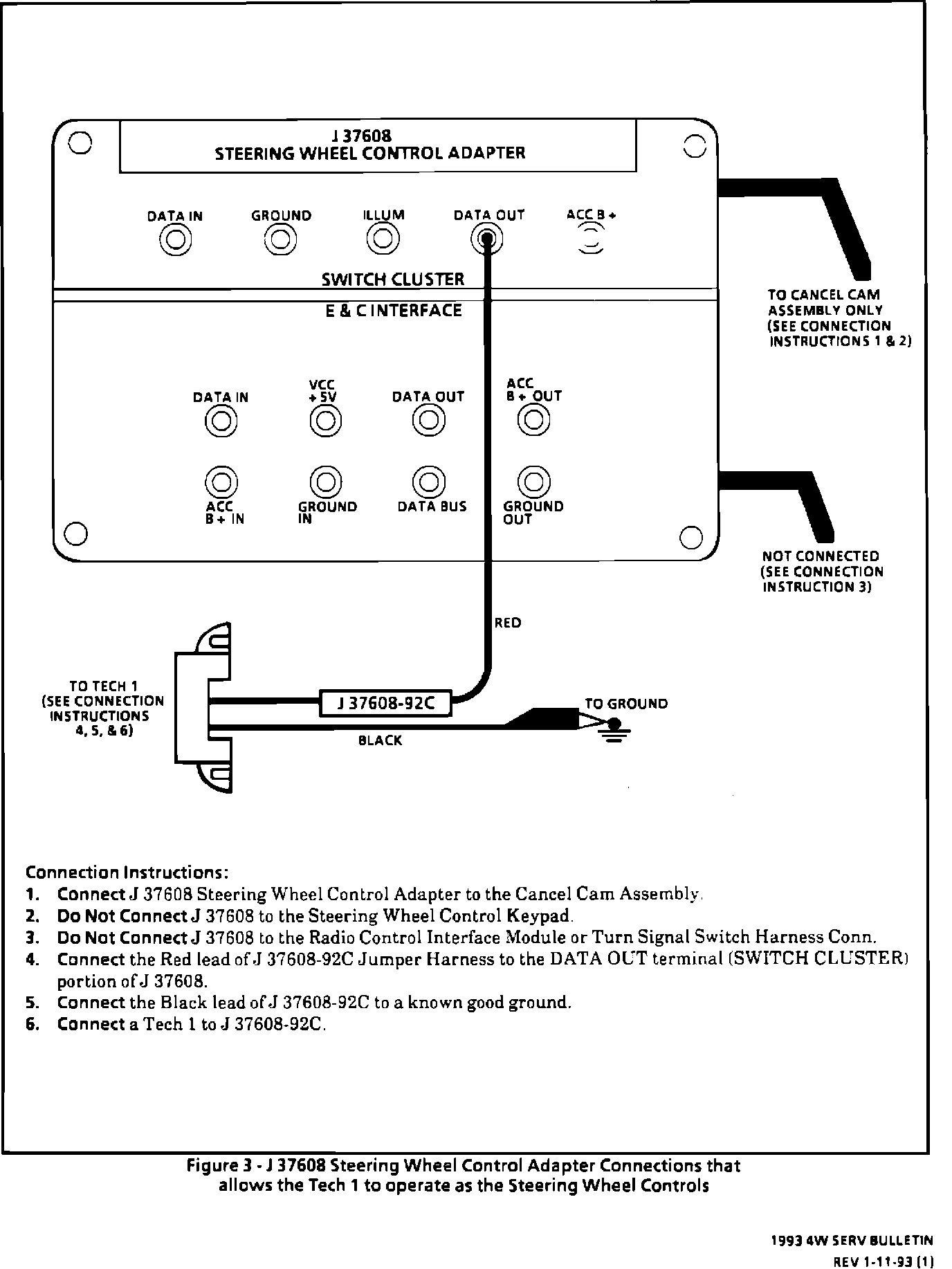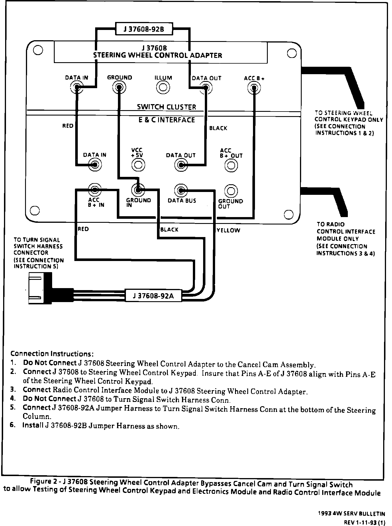 Page 8A-89-12 - Figure 4 J37608 - Tool and Connection to Allow the Tech. 1 to Simulate the Steering Wheel Control Keypad and Electronic Module
