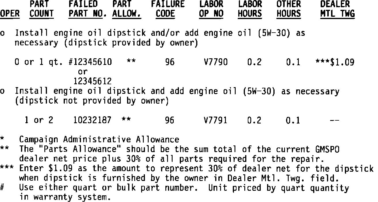 If the customer requests that the dealer install the engine oil dipstick or engine oil is added, dealers should submit a warranty claim on each vehicle completed under this campaign.