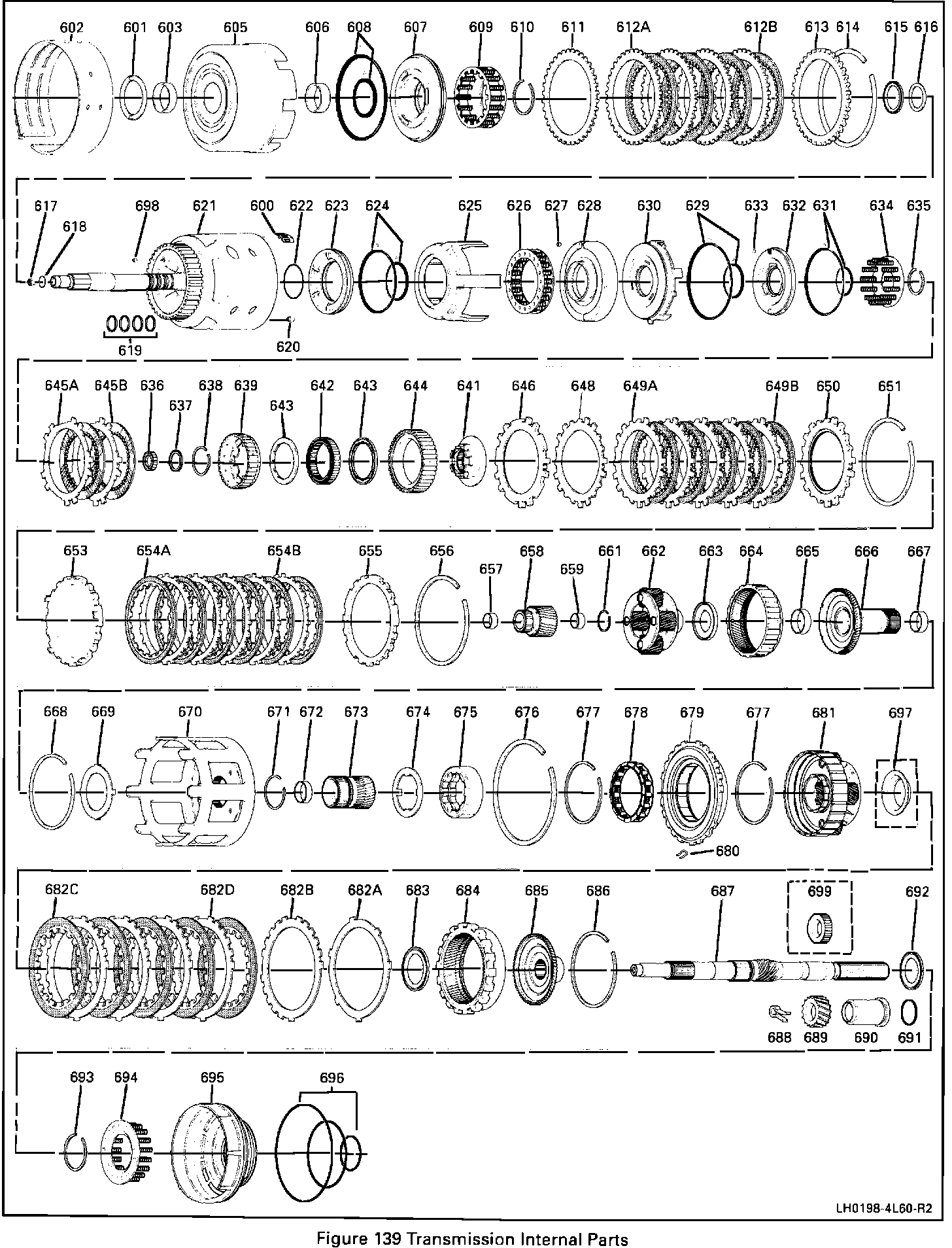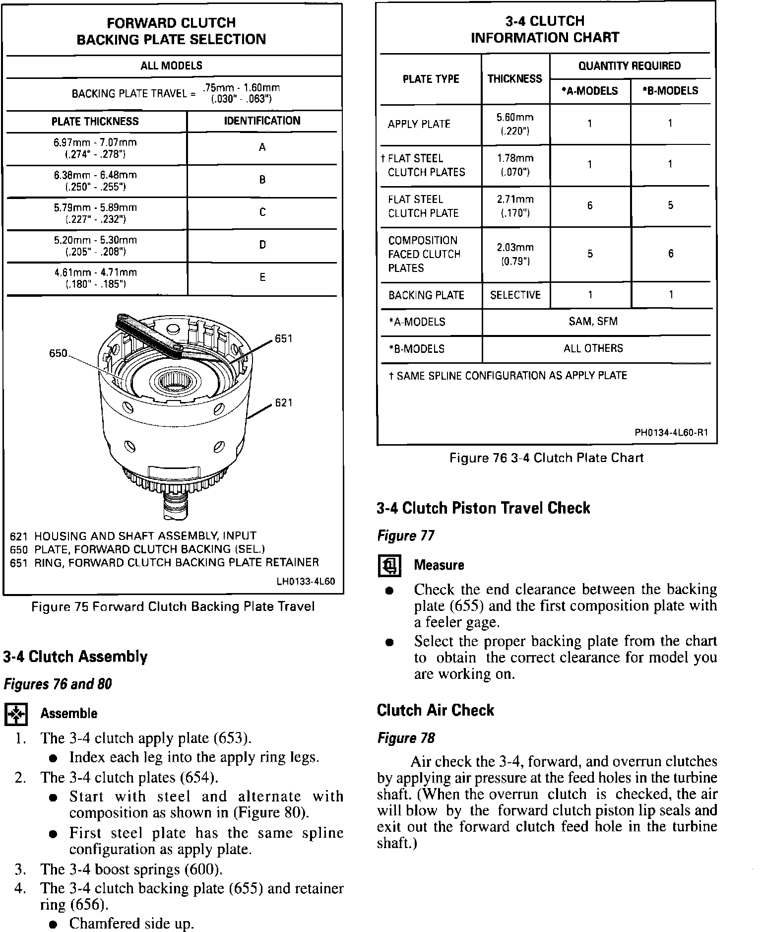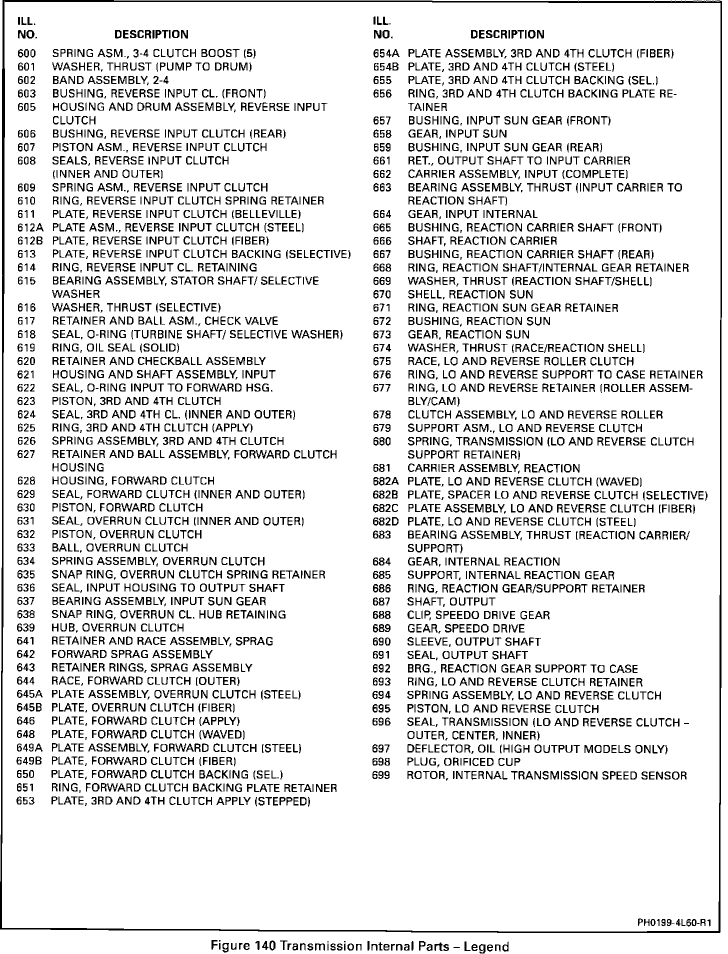 On January 05, 1993 (Julian Date 005) HYDRA-MATIC 4L60 transmissions were built with an improved design 3-4 clutch. The improved design consisted of combining the 3rd and 4th clutch ring retainer plate (Ill. 652), the 3rd and 4th clutch apply (stepped) plate (Ill. 653) and the 3rd and 4th clutch (steel) plate (Ill. 654C) into one 3rd and 4th clutch apply plate (Ill. 653) Figure 1. The 3rd and 4th clutch steel plates are also thicker and the backing plate selection has changed as noted in Figure 2.