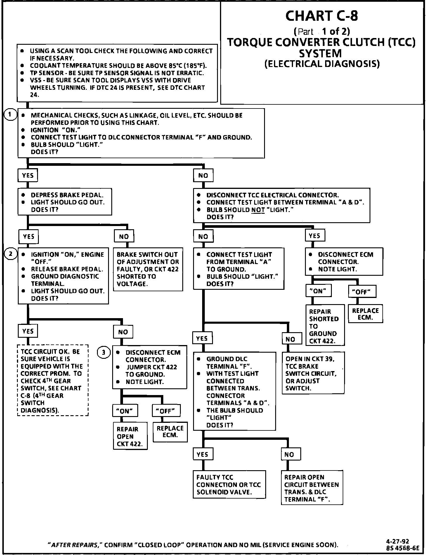 2. Grounding the diagnostic terminal with the engine "OFF" should allow the ECM to energize the TCC solenoid.
