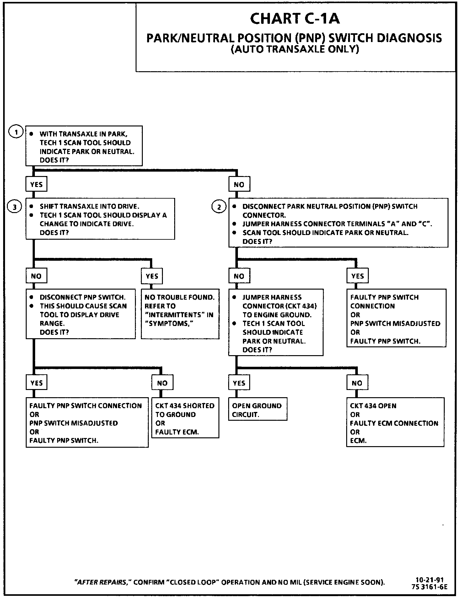 Chart C-1A - Park/Neutral Position (PNP) Switch Diagnosis (Auto Trans Only):