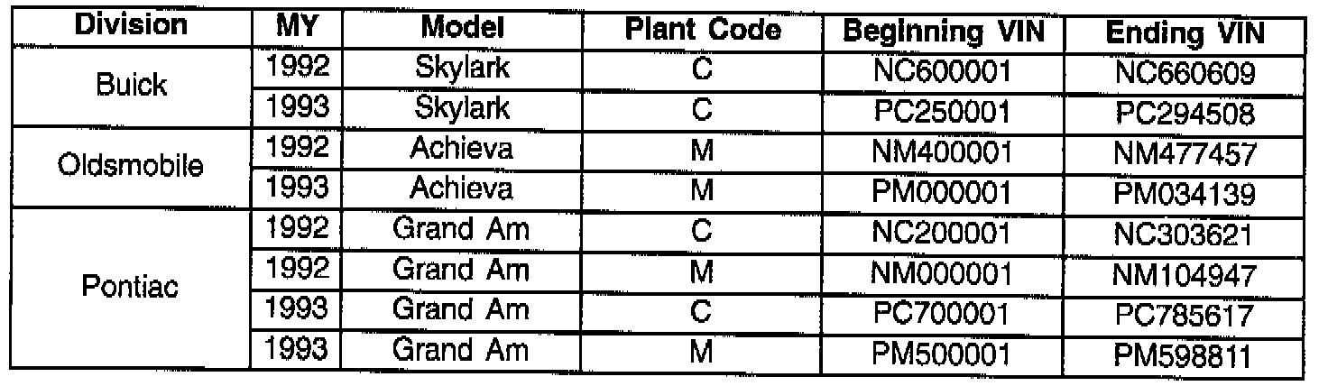 Customer claims for reimbursement on previously paid repairs to replace the cylinder head as a result of cylinder head cracking that resulted in an engine coolant leak, are to be submitted by November 1, 1996 (this time limitation may be longer depending on the law in some states, such as California, Connecticut, Virginia, and Wisconsin). Repairs must have occurred within seven years of the date the vehicle was originally placed in service, or 100,000 miles (160,000 km), whichever occurs first. Owners (and/or prior owners) must submit original documentation which reasonably confirms the amount of unreimbursed repair expense(s), a description of the repair, date of the repair, and the person or entity performing the repair. CUSTOMERS FROM THE STATES OF CALIFORNIA, CONNECTICUT, VIRGINIA, and WISCONSIN MUST SUBMIT REQUESTS FOR REIMBURSEMENT DIRECTLY TO (BUICK / OLDSMOBILE / PONTIAC) PER INSTRUCTIONS IN THE OWNER LETTER.