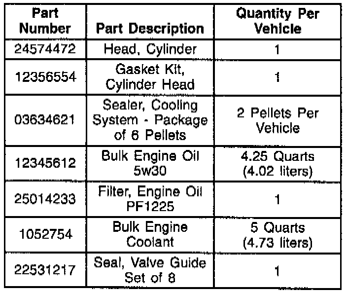 Whenever ordering parts for a cylinder head replacement, refer to the part numbers in figure: