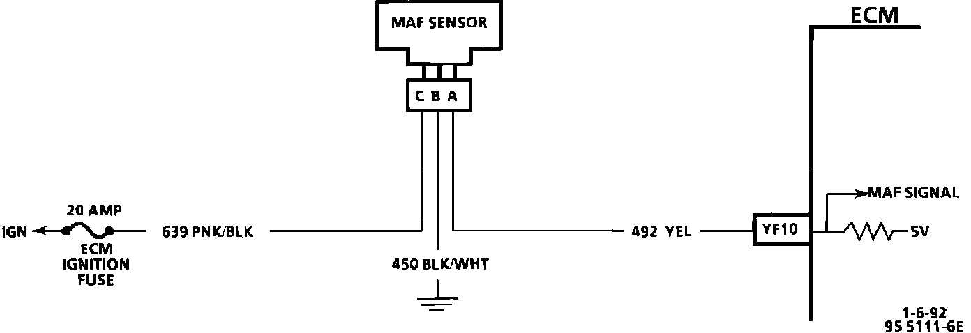 ^ Poor Connection at ECM pin "YF10" or MAF sensor connector. Inspect harness connectors for backed out terminals, improper mating, broken locks, improperly formed or damaged terminals, and poor terminal to wire connection.
