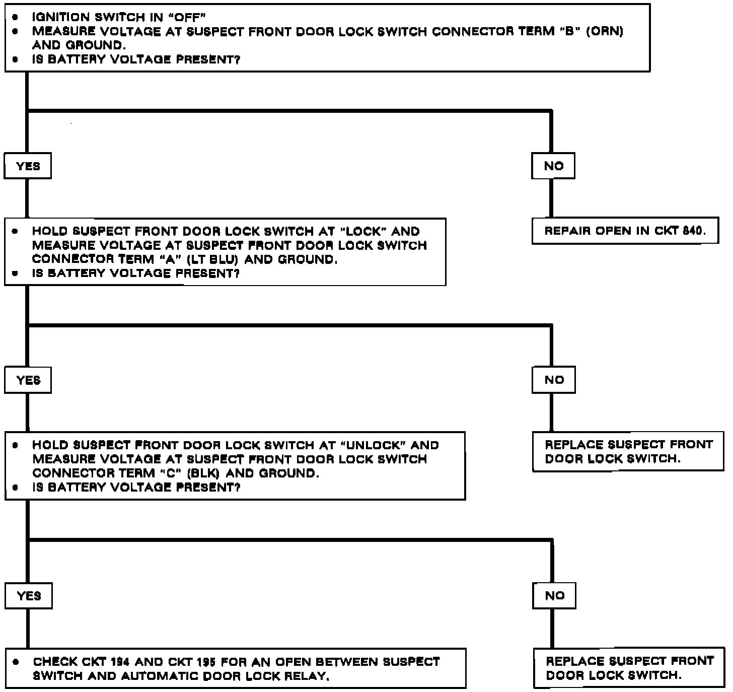 Chart #2 - Power Door Locks Operate From Only One Front Door Lock Switch: