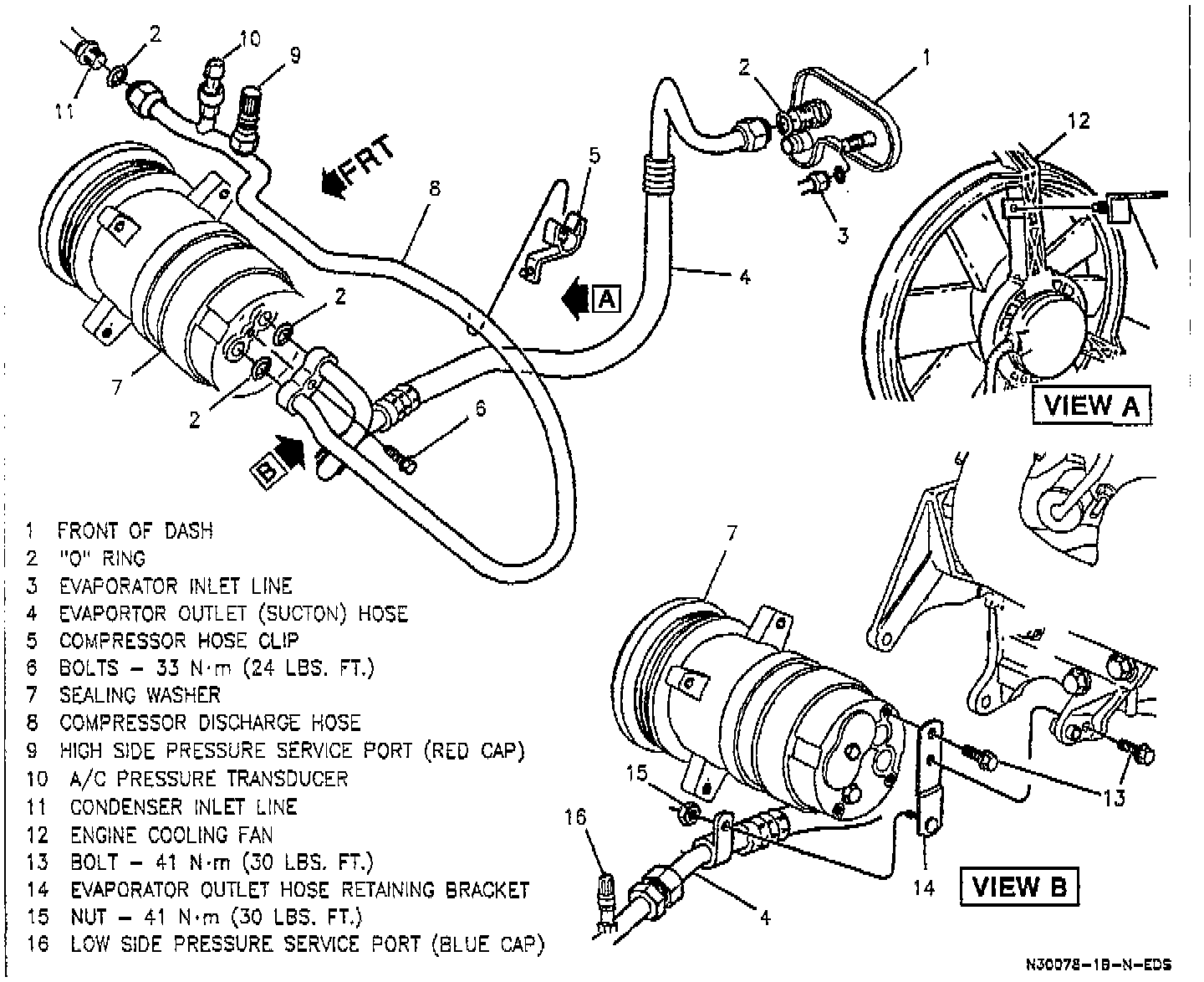 A/C Hose Routing And Service Port Locations - 3.3L 6cyl.: