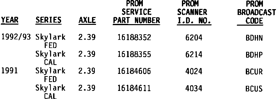 1991-93 SKYLARK WITH 3300 (CODE N) ENGINES
