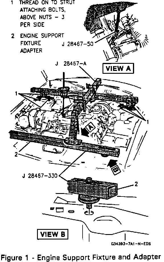 ^ Use J 28467-330 Engine Support Fixture Adapter for supporting the engine when servicing engine/transmission components.