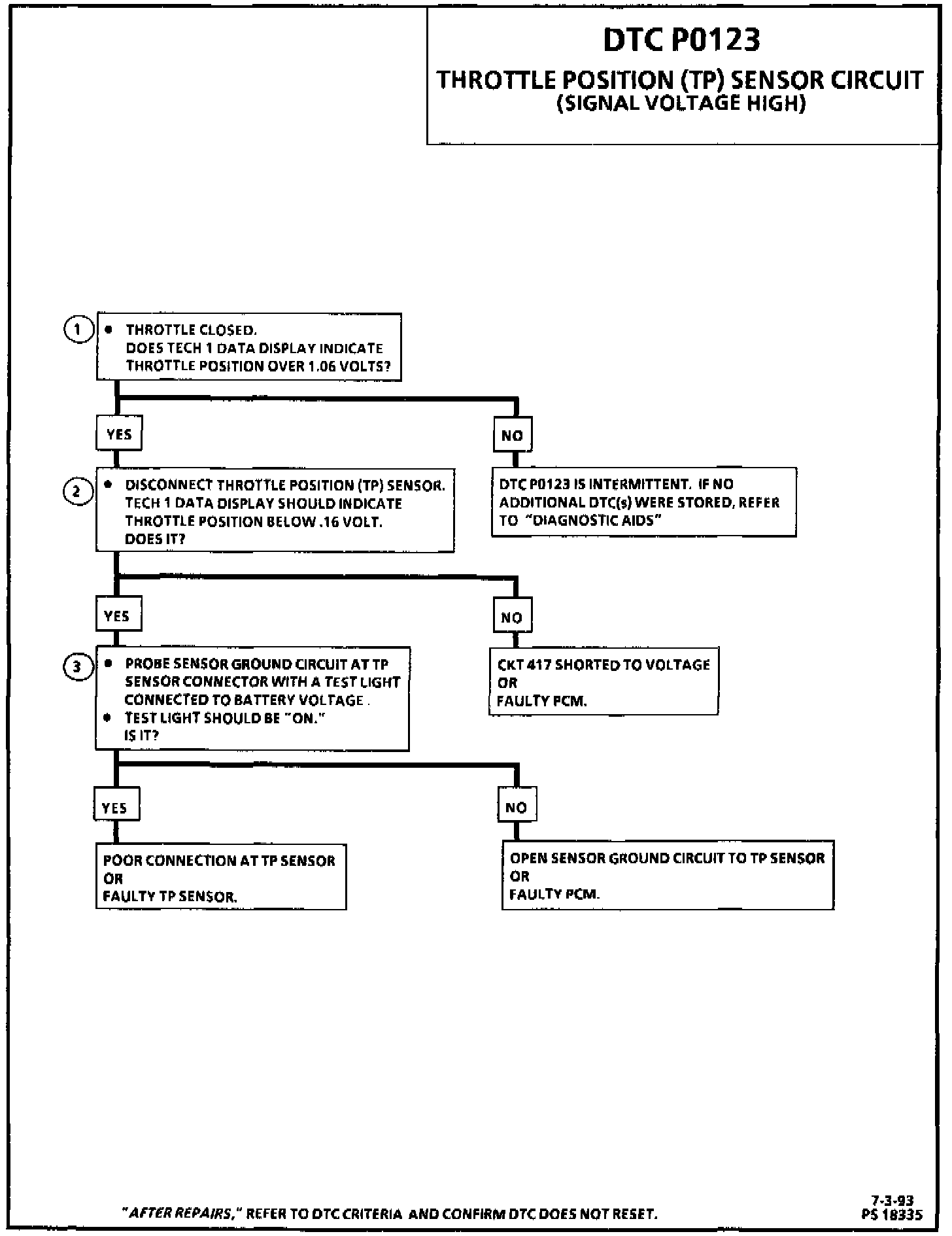 DIAGNOSTIC TROUBLE CODE (DTC) P0123 WILL SET WHEN