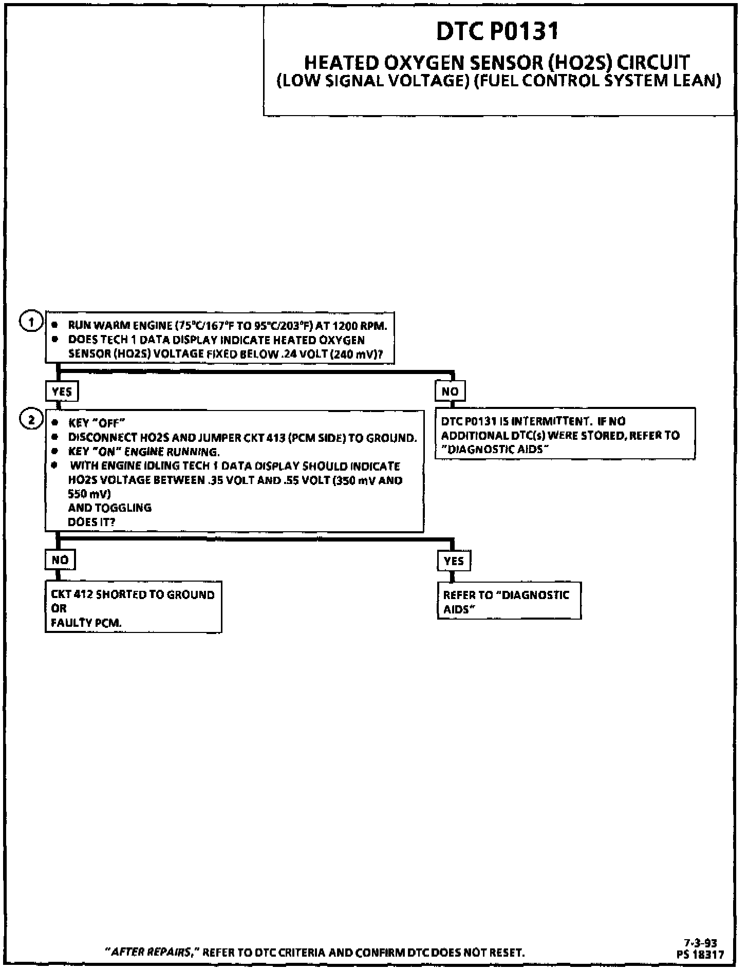 DIAGNOSTIC TROUBLE CODE (DTC) PO131 WILL SET WHEN