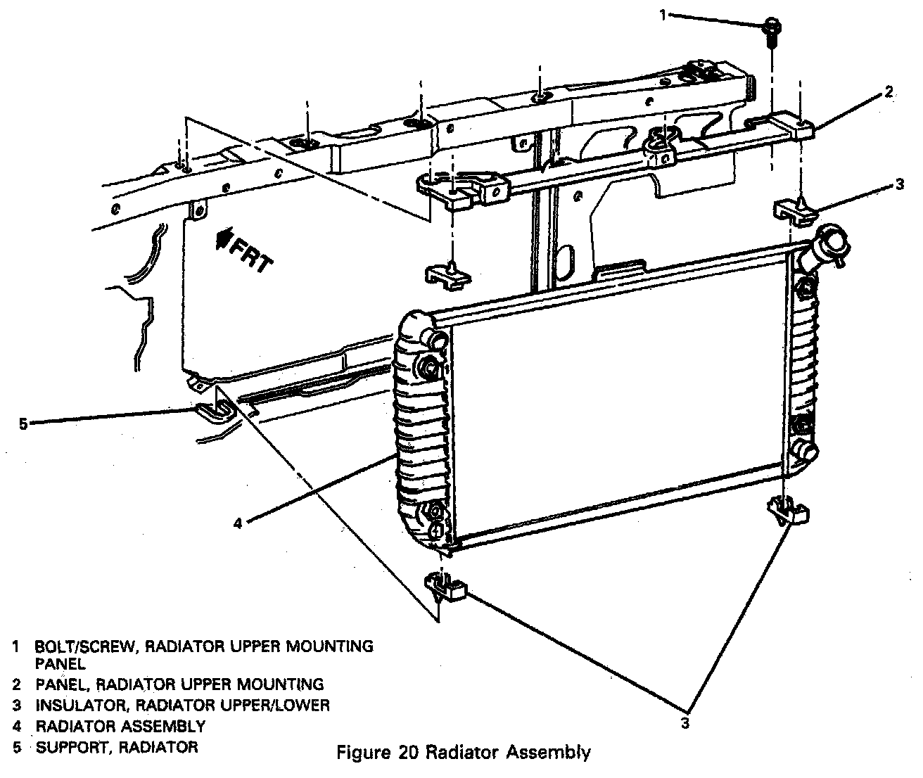 5. Engine mount strut bracket to radiator upper mounting panel.