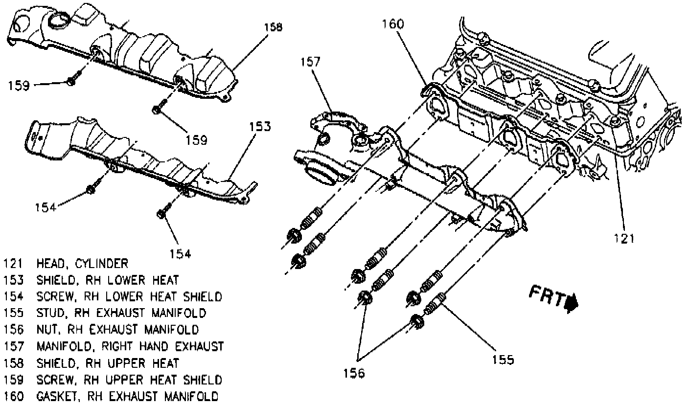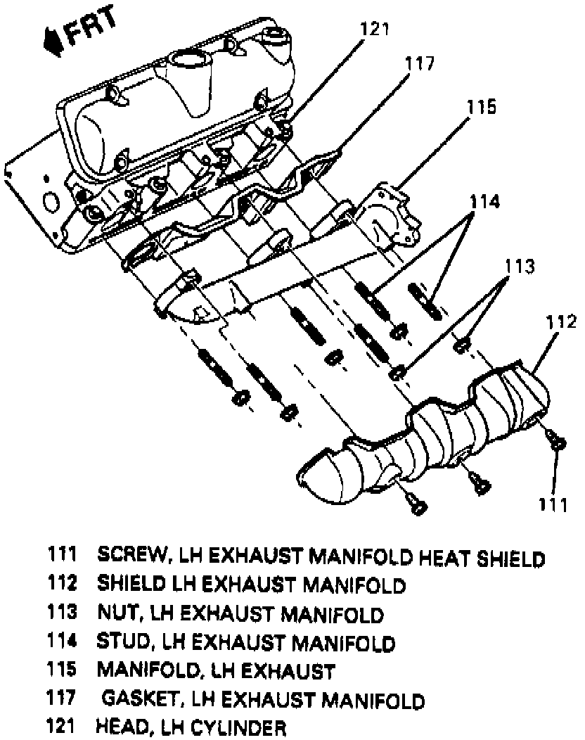 6. Remove oxygen sensor, then exhaust manifold attaching bolts.