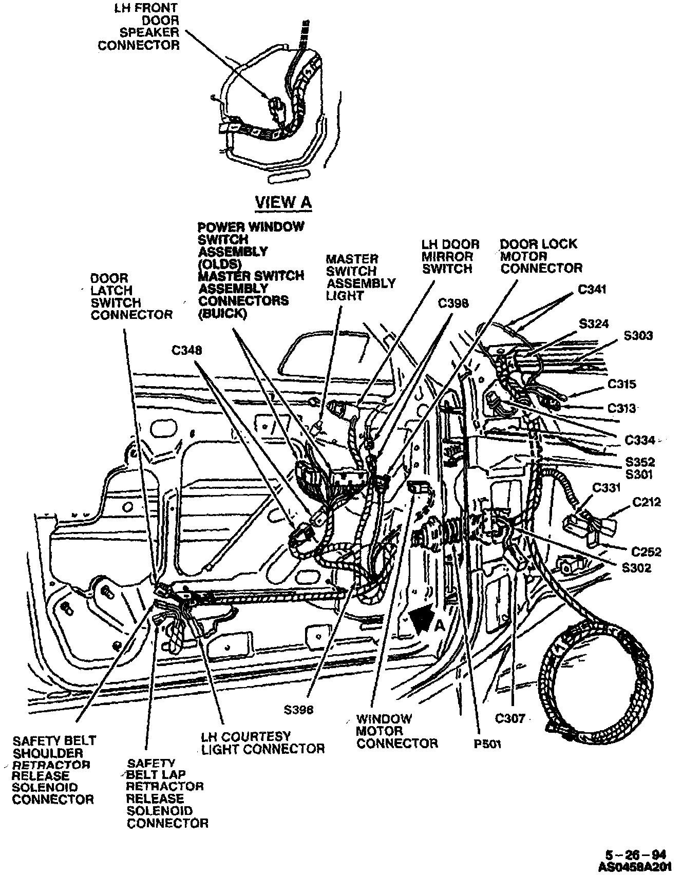 The Driver's Door latch Switch is located in the rear of the LF door.