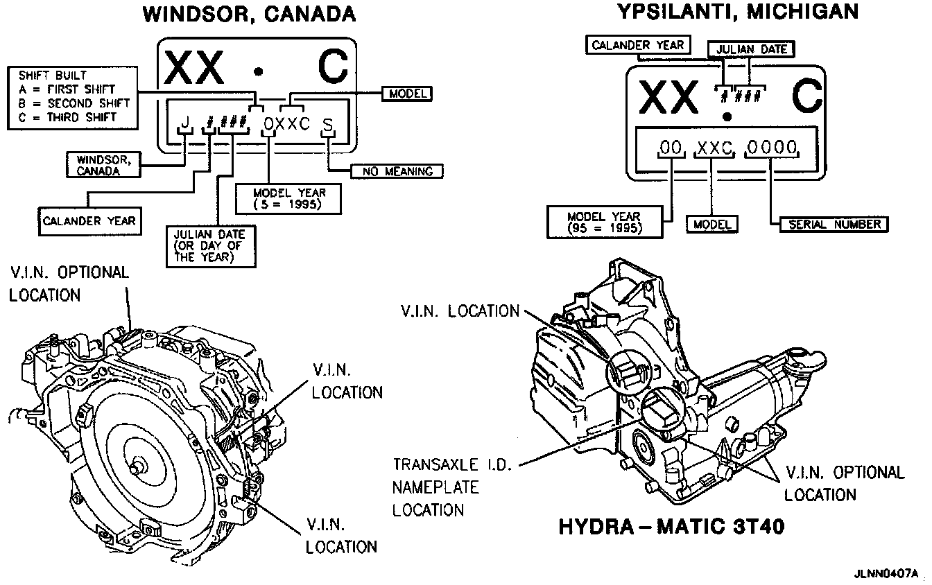 Hydra-Matic 4T60E Transaxle ID And Partial VIN Location: