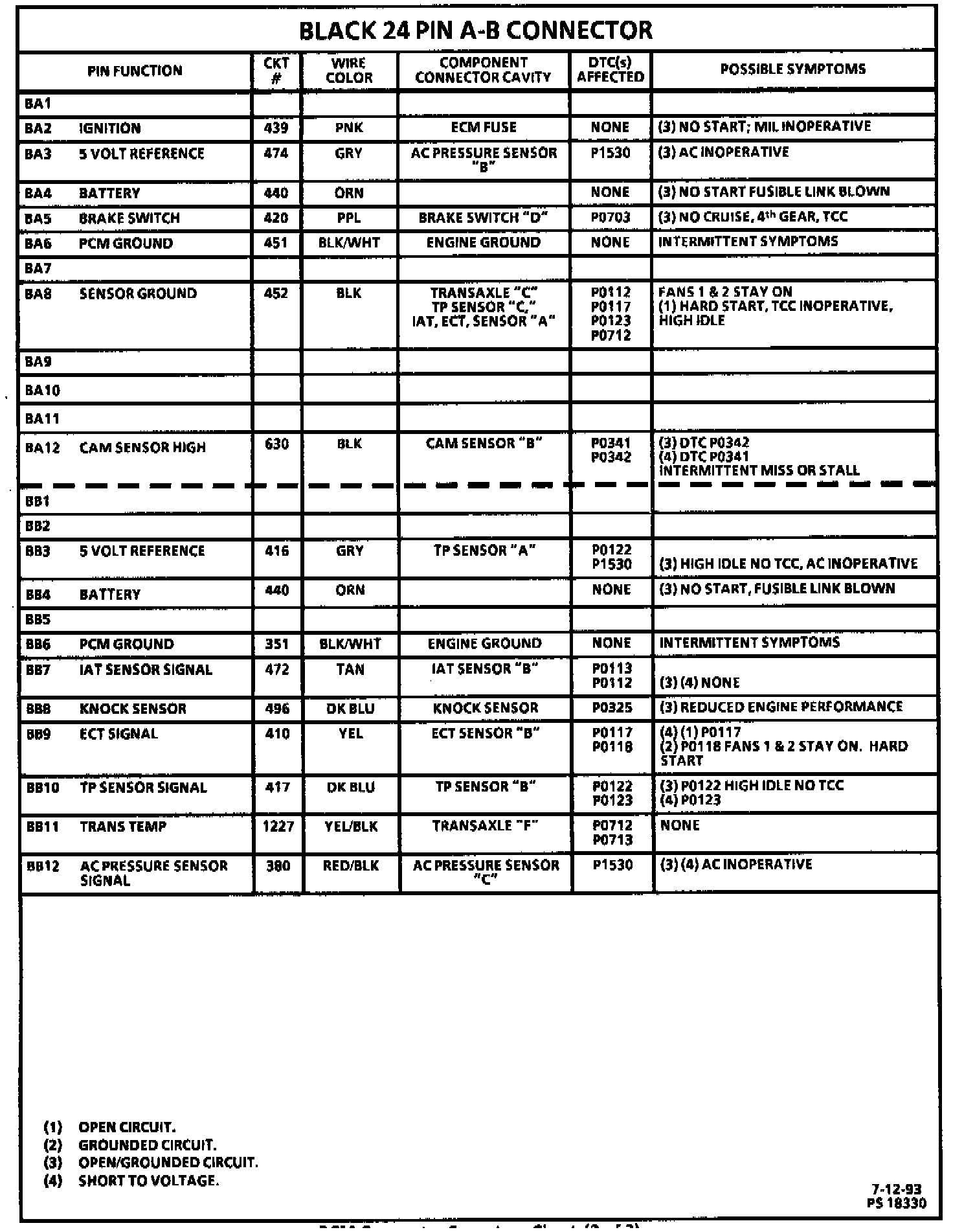PCM Connector Symptom Chart (3 Of 3):